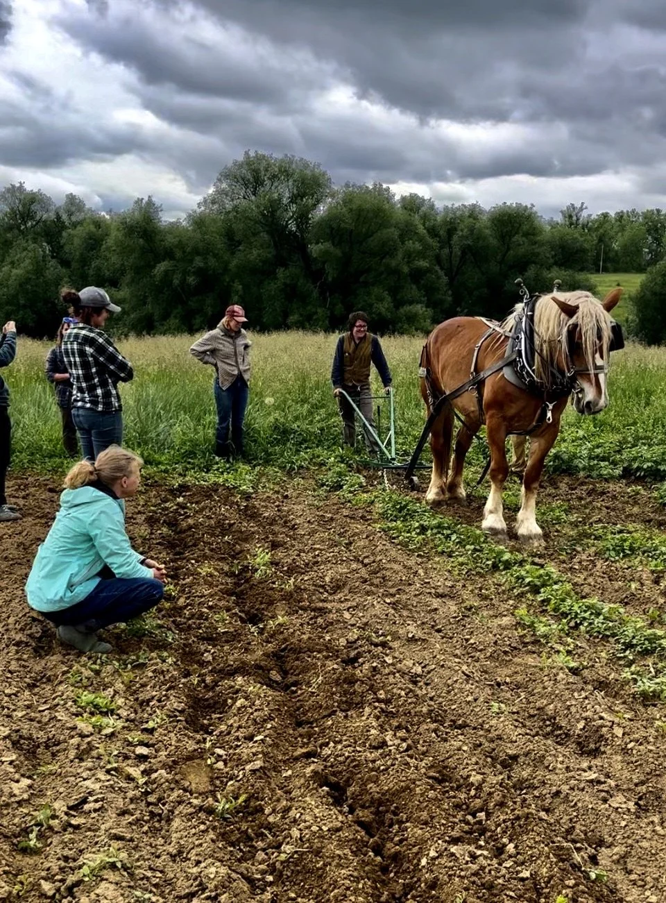This two day beginner workshop will be a hands-on experience of learning the basics of working draft horses on a farm. In this course participants will learn the principles of safe handling, harnessing, driving, hitching, hoof care, and feeding.